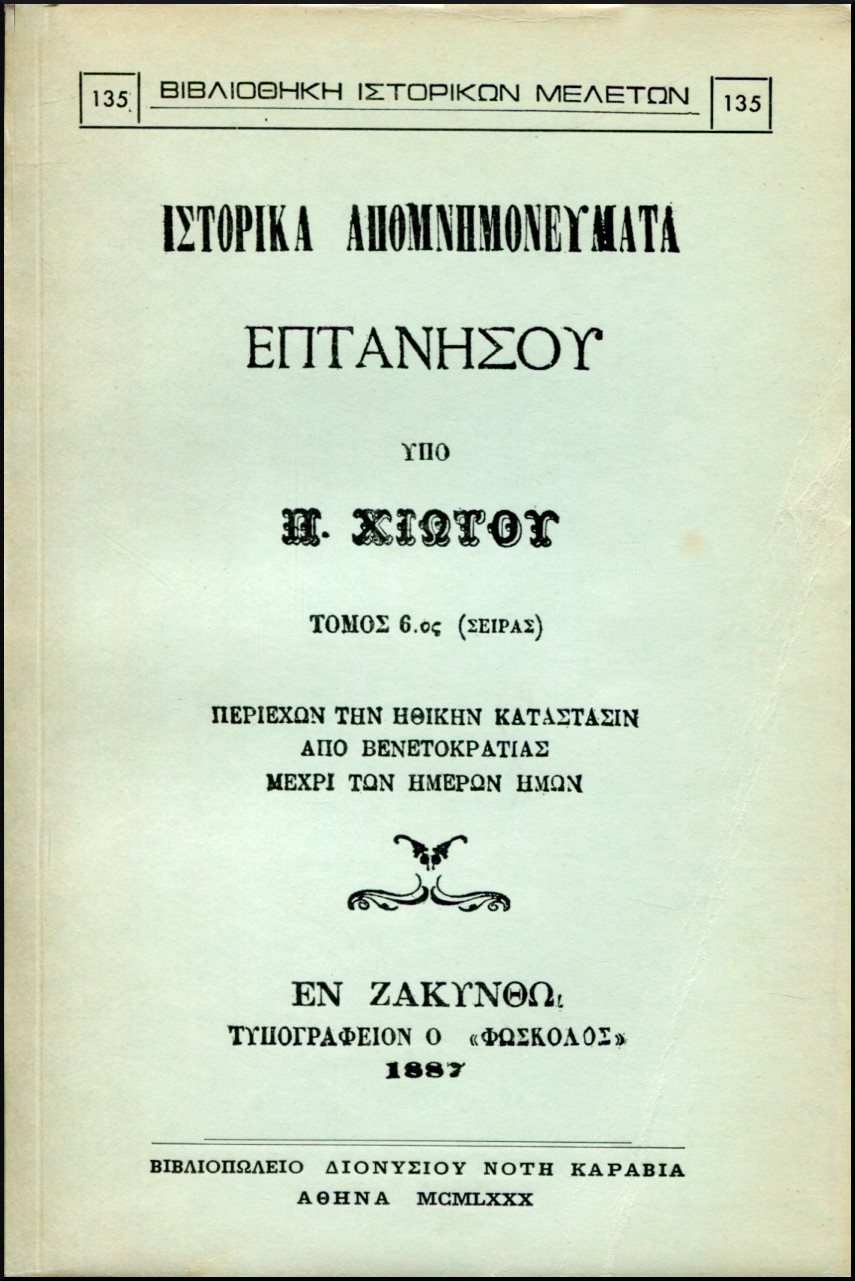 ΠΕΡΙΕΧΩΝ ΤΗΝ ΗΘΙΚΗΝ ΚΑΤΑΣΤΑΣΙΝ ΑΠΟ ΒΕΝΕΤΟΚΡΑΤΙΑΣ ΜΕΧΡΙ ΤΩΝ ΗΜΕΡΩΝ ΗΜΩΝ