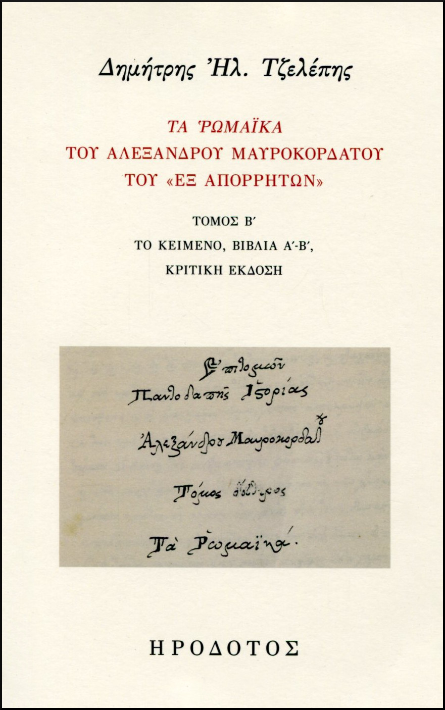 ΤΑ ΡΩΜΑΙΚΑ ΤΟΥ ΑΛΕΞΑΝΔΡΟΥ ΜΑΥΡΟΚΟΡΔΑΤΟΥ ΤΟΥ «ΕΞ ΑΠΟΡΡΗΤΩΝ» (ΔΕΥΤΕΡΟΣ ΤΟΜΟΣ)